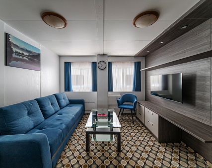 Вас ждут просторные и комфортабельные каюты с современными лаконичными интерьерами. Все каюты оснащены санузлом с душевой, кондиционером, холодильником, телевизором, сейфом и феном. Помимо обновлённого каютного фонда, теплоход «Кронштадт» предлагает большое количество уютных мест для отдыха. В атмосферных барах и гостеприимных ресторанах на теплоходе вас ждёт тёплый приём, расслабляющая обстановка и потрясающие панорамные виды.