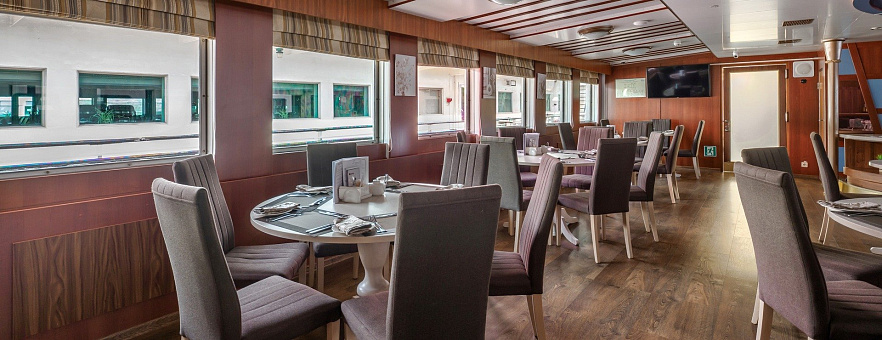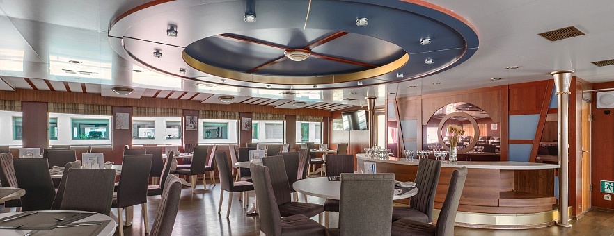 При разработке меню для ресторанов на борту наши шеф-повара вдохновлялись кулинарными традициями побережья Чёрного моря, Волги, Дона, озёрного края Северо-Запада России. Мы используем свежие локальные продукты, характерные для этих регионов, и предлагаем нашим гостям попробовать блюда, которые отражают гастрономические особенности народов нашей страны. Благодаря концепции «Родные берега», вы получите более полное представление о том месте, в котором находитесь, откроете новую палитру вкусовых ощущений и обретёте дружную компанию единомышленников.