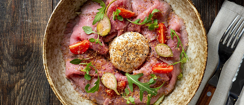 При разработке особенного меню для теплохода «Мустай Карим» мы стремились превзойти ваши гастрономические ожидания. Чтобы вы могли наслаждаться многообразием российской кухни, подкреплять свежие впечатления от посещенных локаций новым гастрономическим опытом, перемещаясь из одного увлекательного города в другой. Наши шеф-повара вдохновлялись кулинарными традициями побережья Чёрного моря, Волги, Дона, озёрного края Северо-Запада России. Каждый рецепт создавался и тщательно выверялся талантливой командой, а каждое блюдо — это результат изучения кулинарных традиций с применением инновационного подхода к любимому делу. Все это позволило воспроизвести в меню бортовых ресторанов традиционные блюда народов Поволжья, Карелии, Придонья, Кубани и многих других. Особое внимание уделяется соусам, приготовленным по рецептам от местных жителей. Но самый большой секрет успешного меню – это свежайшие локальные продукты, которые поставляются на борт прямо во время путешествия: например, североморская треска и палтус, рыбинский судак, карельские дикоросы, лесные сморчки, фермерские мясные продукты, в том числе северная оленина и валдайский кролик, а также молочные продукты с минимальным сроком хранения, раскрывающие натуральный вкус каждого региона. Благодаря концепции каждое блюдо в меню напоминает о точках на карте круиза и помогает еще больше проникнуться атмосферой мест пребывания.
