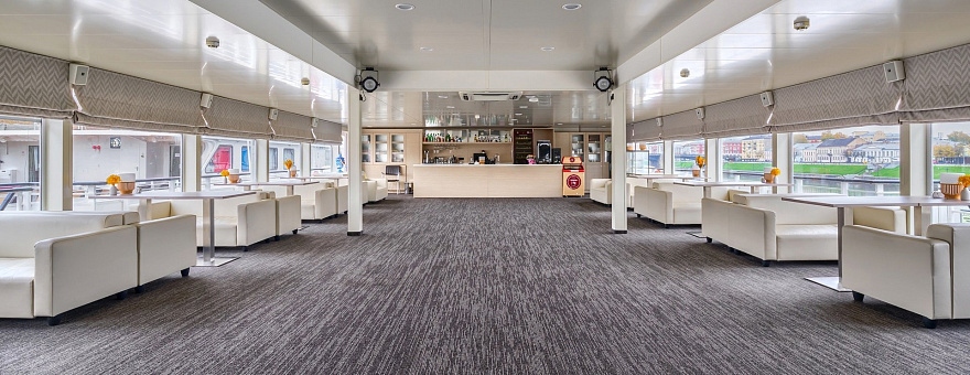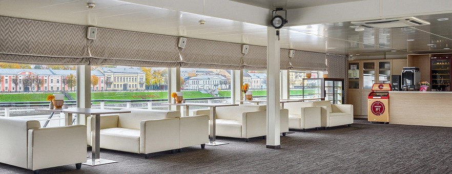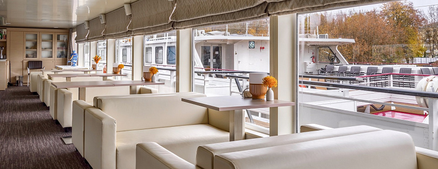 - Солнечная палуба, где можно наслаждаться неспешным течением реки и сменяющимися пейзажами, подышать свежим воздухом.