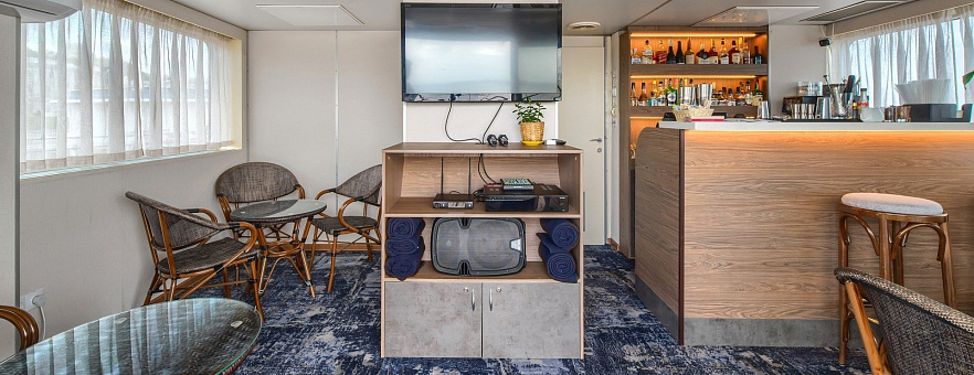 На борту наших теплоходов мы создали все условия для комфортного отдыха и приятного путешествия. На всех теплоходах есть медицинский кабинет, где вы можете получить квалифицированную помощь, стойка регистрации, куда вы можете обратиться по любым возникающим вопросам, сувенирный киоск, где вы можете приобрести памятные сувениры. Гладильная комната поможет привести в порядок свою одежду перед выходом на экскурсию.