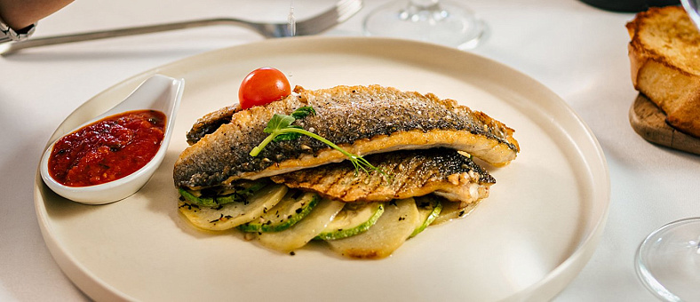 Питание в ресторанах на теплоходе «Александр Пушкин» организовано по гастрономической концепции «Родные берега». На борту вас ждёт кухня в лучших традициях побережья Поволжья, Дона, Чёрного моря, Енисея, Русского Севера и Восточной Сибири. В своих рецептах при приготовлении наши повара используют свежие локальные продукты из регионов путешествия наших круизов.