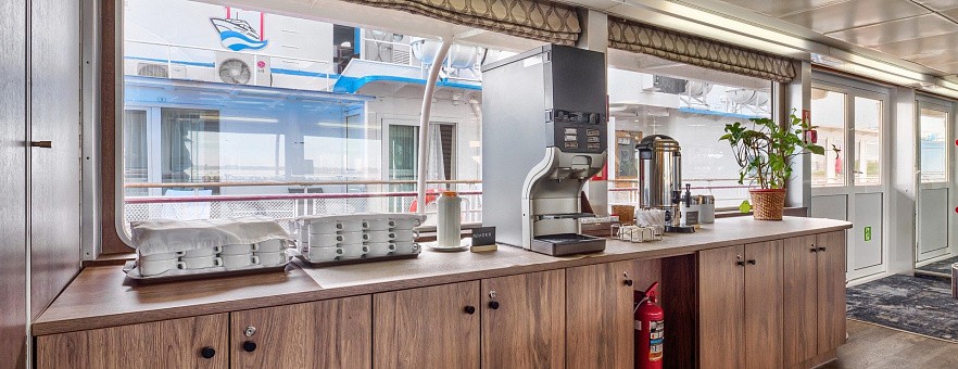 - Кофе-станция — общедоступный стол с горячими напитками. Время работы: с 6:00 до 00:00.
