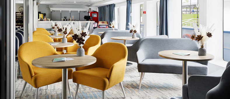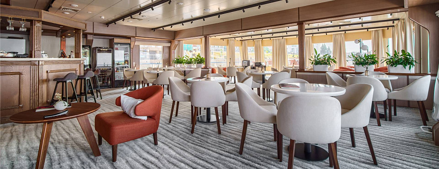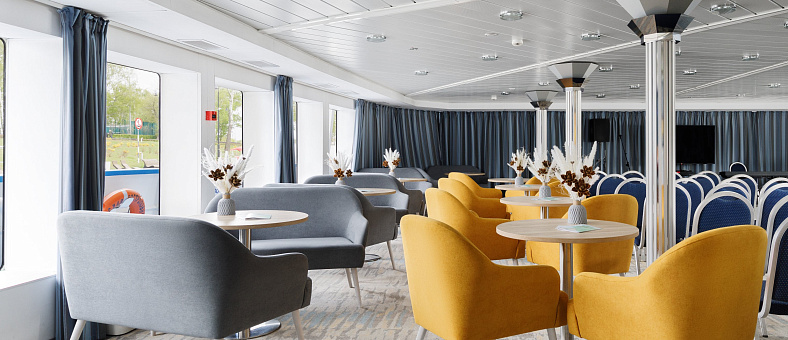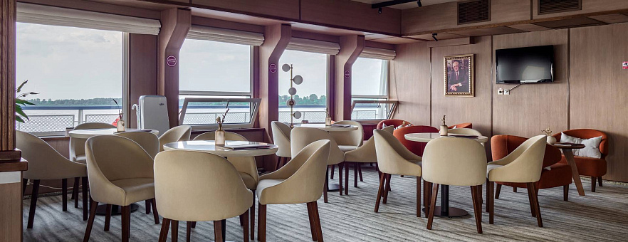 Вас ждет премиальный комфорт в каждой каюте: санузел с душевой, кондиционер, холодильник, сейф, телевизор и фен, бутилированная вода с ежедневным пополнением, гигиенический набор, а также капсульная кофемашина и халаты в каютах класса «Люкс» и «Полулюкс А». Помимо обширного каютного фонда, теплоход «Мстислав Ростропович» предлагает большое количество уютных мест для отдыха. В атмосферных барах и гостеприимных ресторанах на теплоходе вас ждёт тёплый приём, расслабляющая обстановка и потрясающие панорамные виды.