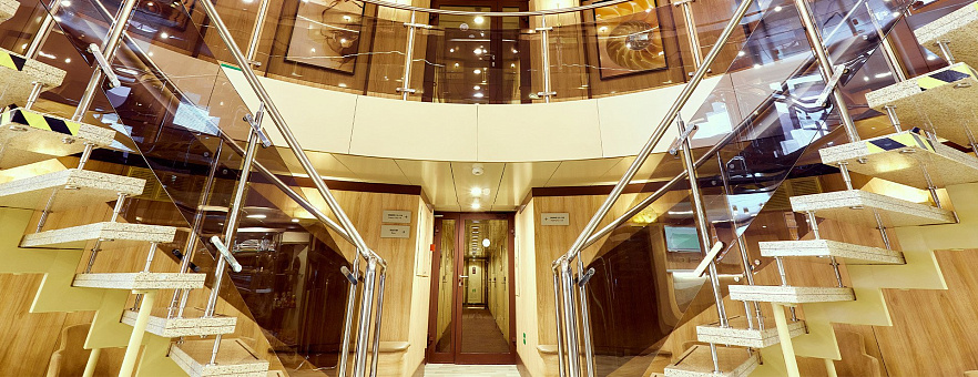 Теплоход обладает преимуществами, которые несомненно выделяют его на фоне остального флота: лифт и роскошный палубный атриум — идеальное место для эффектных фотографий гостей. Одно из самых ярких впечатлений в речных круизах — это постоянно меняющиеся пейзажи, которыми можно любоваться прямо, не выходя из своей каюты. Главная отличительная черта теплохода "Мстислав Ростропович" — это то, что 80% кают оборудованы персональными балконами, что позволяет сделать ваш отдых более приватным. На собственном балконе можно почитать книгу, выпить бокал вина, встретить рассвет или наслаждаться закатом, пребывая в уединении. Важно отметить, что все каюты с балконами являются каютами-коннект c возможностью объединения балконов 2-х кают и более, что является идеальным решением для большой семьи.