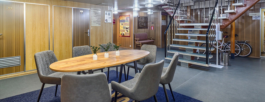 Вас ждут просторные и комфортабельные каюты, оснащённые санузлом с душевой, кондиционером, холодильником, телевизором и феном. Помимо обширного каютного фонда, теплоход «Леонид Соболев» предлагает большое количество уютных мест для отдыха. В атмосферных барах и гостеприимных ресторанах на теплоходе вас ждёт тёплый приём, расслабляющая обстановка и потрясающие панорамные виды.